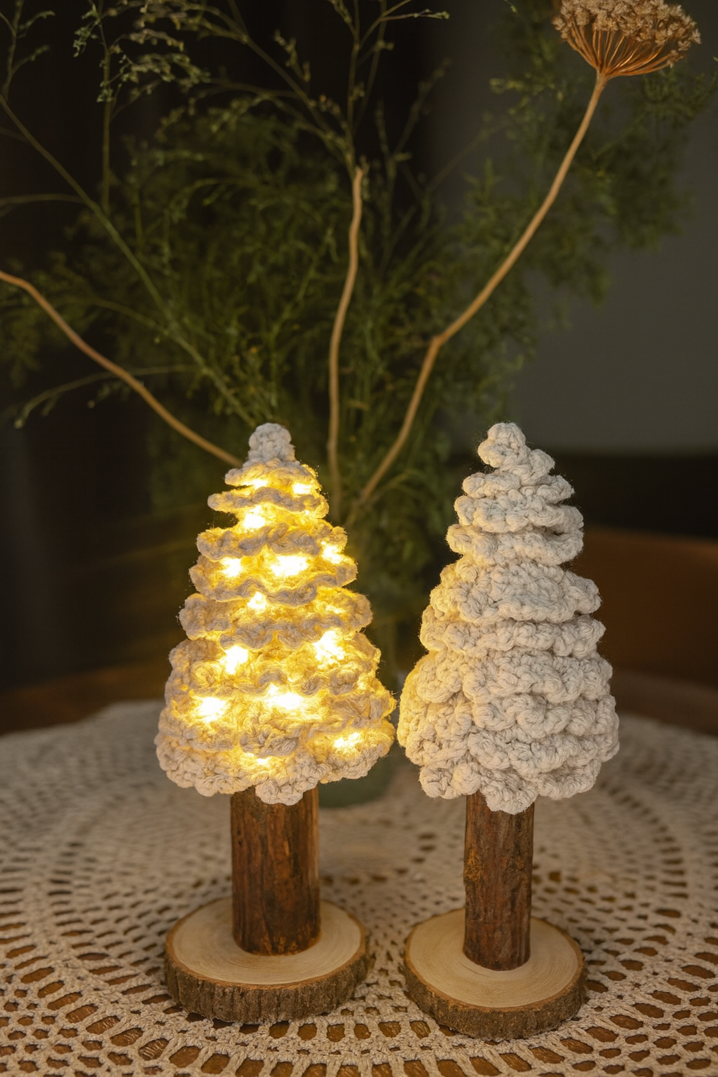 Breng de warmte van de feestdagen in huis met dit schattige, handgemaakte kerstboompje! Dit boompje, met een houten stam en zorgvuldig gehaakte groene takken, is ongeveer 25 cm hoog en perfect als subtiele decoratie voor op tafel, een kastje of bij een kerstarrangement. Het rustieke ontwerp en de natuurlijke uitstraling maken dit boompje een tijdloze toevoeging aan jouw winterdecoratie. Een charmant item dat elk huis gezellig maakt tijdens de feestdagen