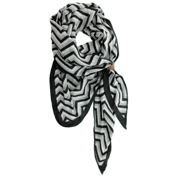 Shawl Lizzy Zwart is een prachtige fijn gebreide sjaal met 40% katoen, waardoor hij heerlijk zacht en comfortabel draagt. Het vegan leren bandje op deze shawl maakt het gemakkelijk om hem vast te binden, waardoor hij de hele dag perfect op zijn plek blijft zitten.
