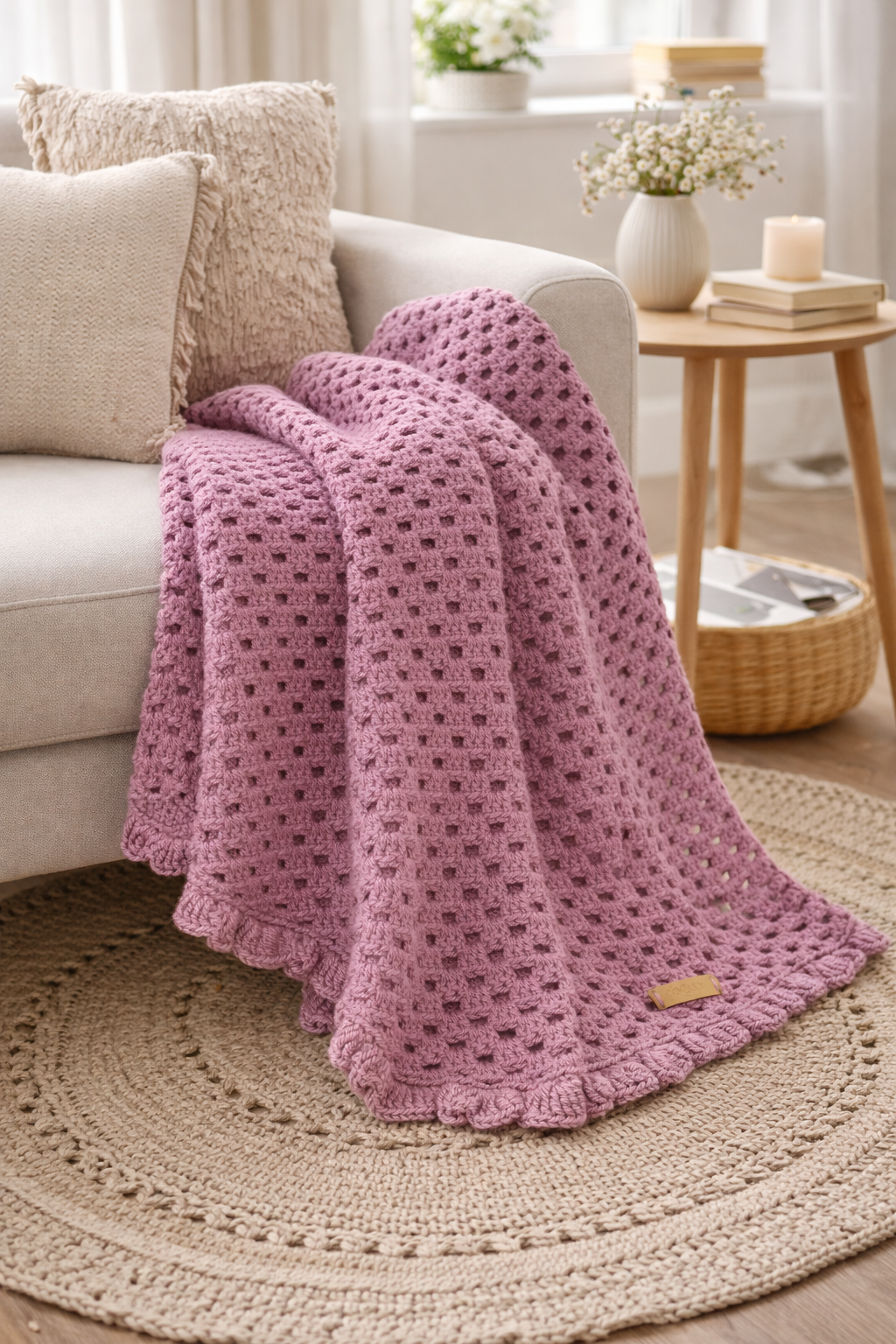De Cozy Home Plaid Oudroze Ā is een handgemaakte plaid die direct warmte en gezelligheid in huis brengt. Met zorg en liefde gehaakt, waardoor elke plaid een uniek en sfeervol item is voor jouw interieur.