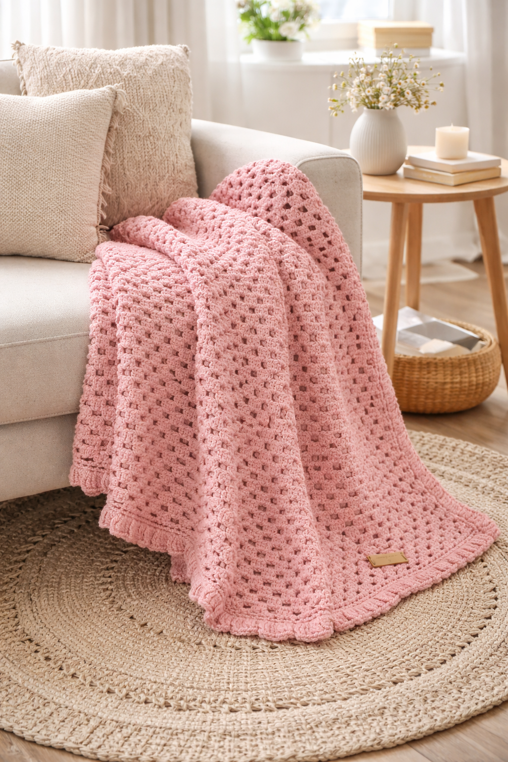 DeĀ Cozy Home Plaid zacht roze is een handgemaakte plaid die direct warmte en gezelligheid in huis brengt. Met zorg en liefde gehaakt, waardoor elke plaid een uniek en sfeervol item is voor jouw interieur.
